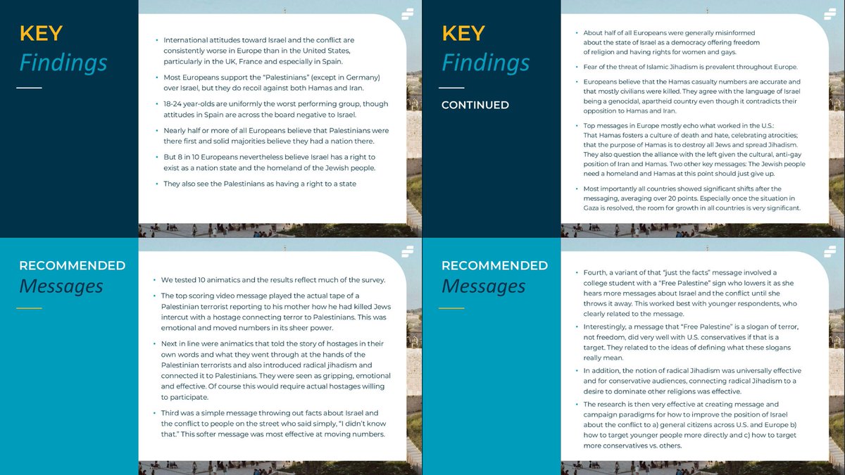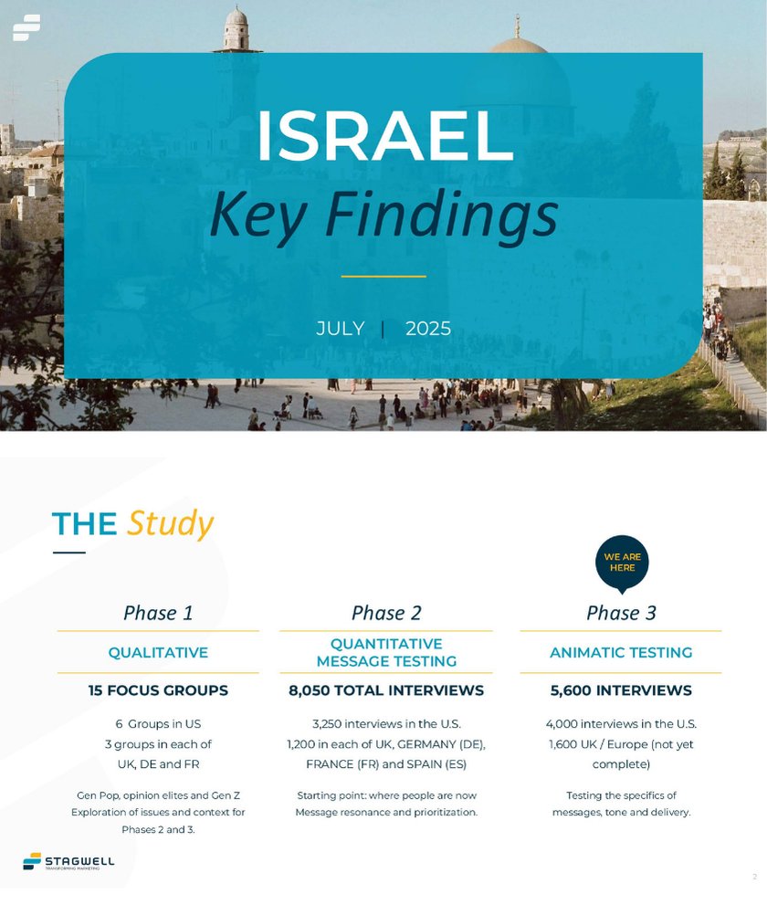 The study ran across the U.S., U.K., Germany, France, and Spain, testing what messages could make Western audiences “rethink” their views on Israel.