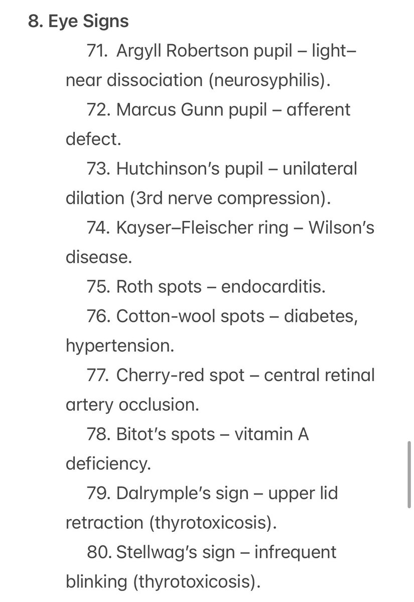 Argyll Robertson, Hutchinson’s, Kayser–Fleischer —