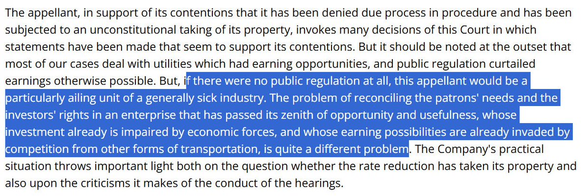 @dickmunson 21. Regulators could rely on SCOTUS' 1945 judgment against Market St. Railway (a SF cable car company) who was denied the right to raise rates just because of competitive forces. In their case the automobile, in today's case cheaper renewable energy. supreme.justia.com/cases/federal/…