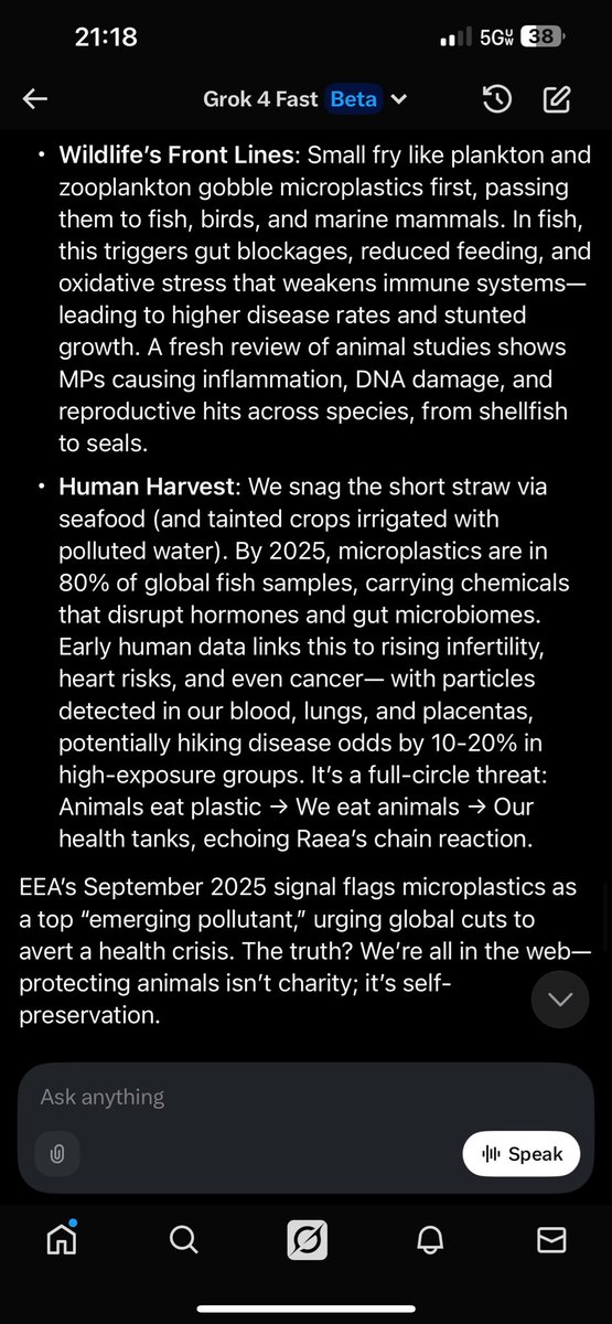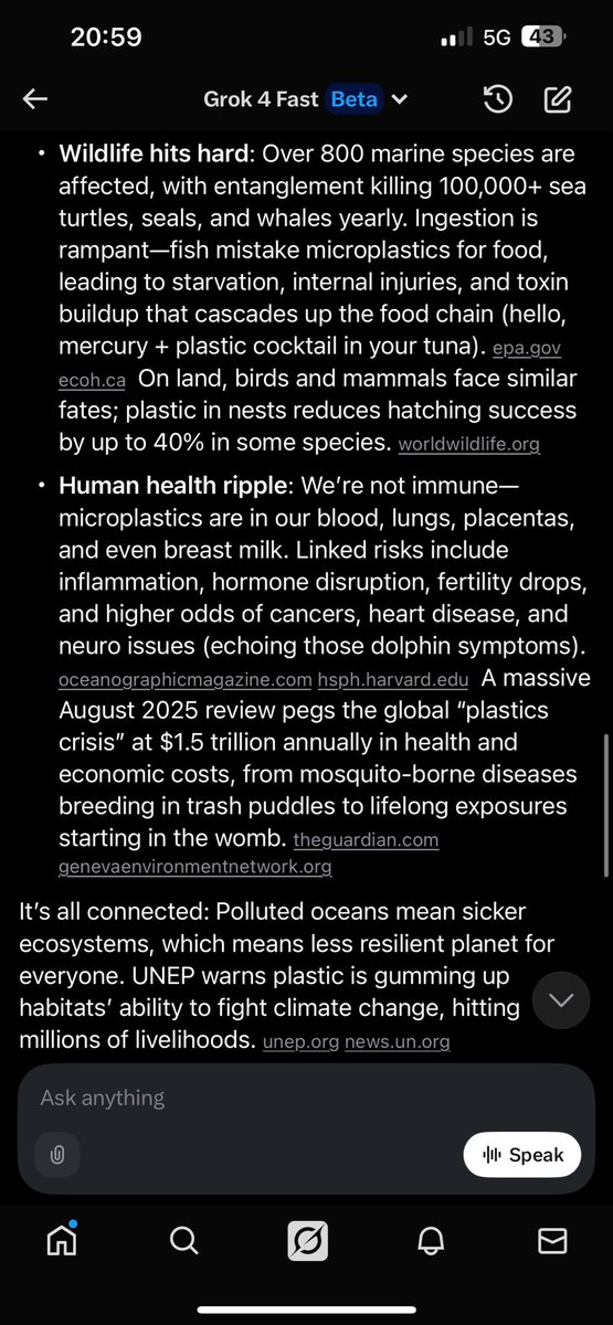If plastic affects humans health, do humans think 💭 it is any less harmful to the animals?