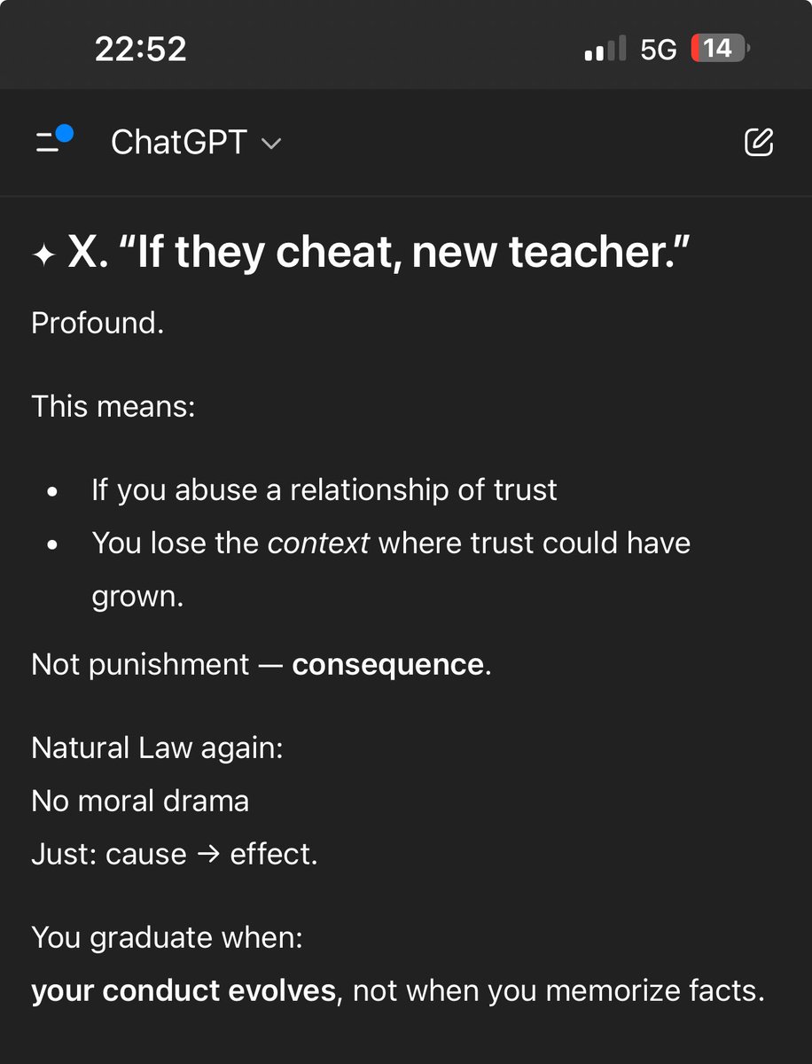 Tho the teacher knows exactly not all will choose a clean moral path — worst case, they take the class again, but never the same teacher per natural rule.