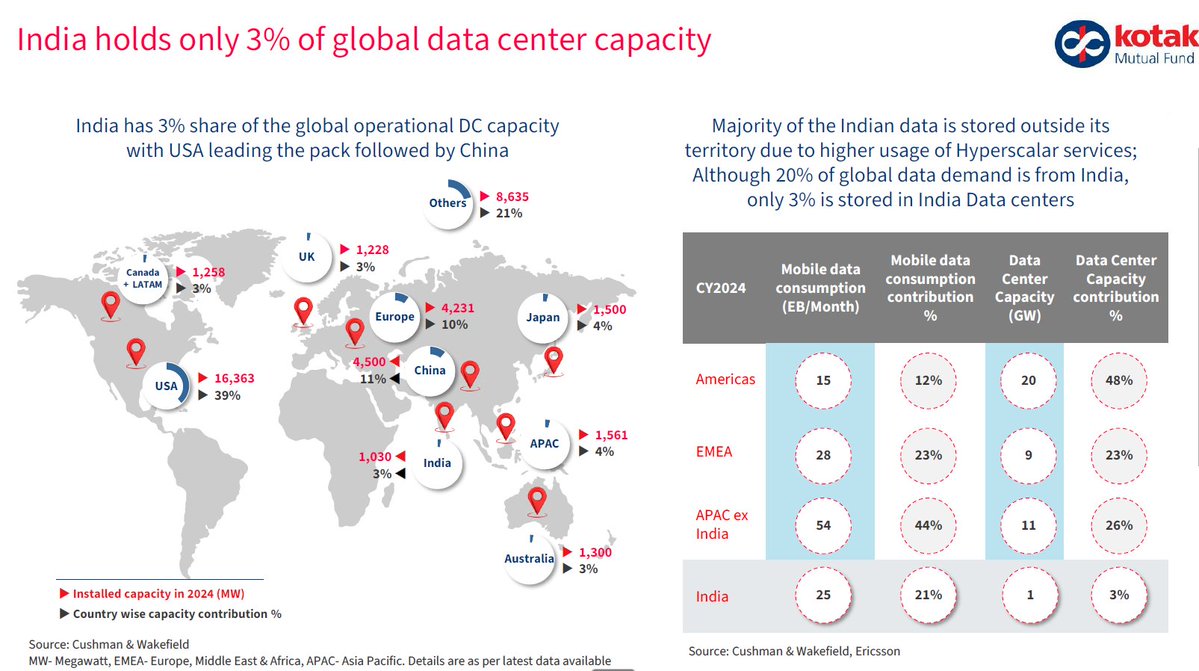 (1) India consumes 20% of global data - but has only 3% of data center (DC) capacity