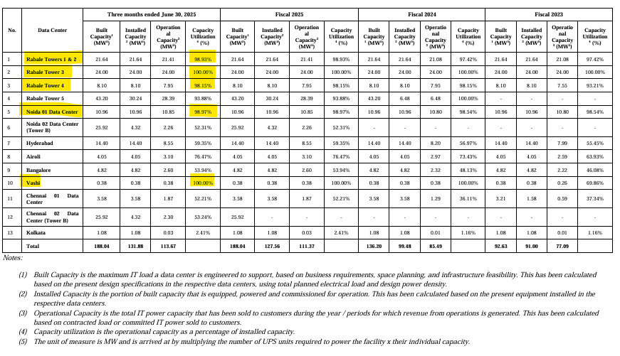 - Interestingly, the consistency remains despite Sify doubling from 92MW capacity in FY23 to 188MW capacity in H2 FY26