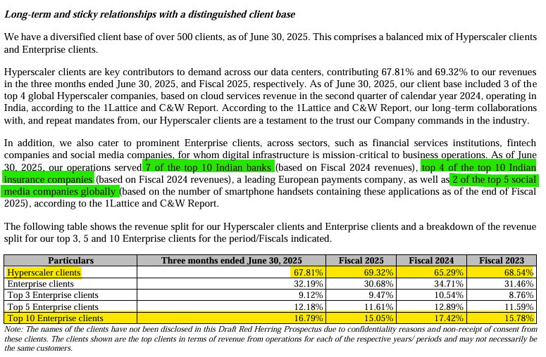 - Hyperscalers are ~67% of revenue & Enterprise clients are ~33% of revenue; this has remained consistent in the past 36 months