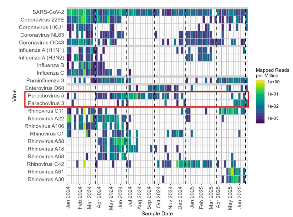 We also saw a year-to-year turnover in Parechovirus serotypes (causes meningitis).