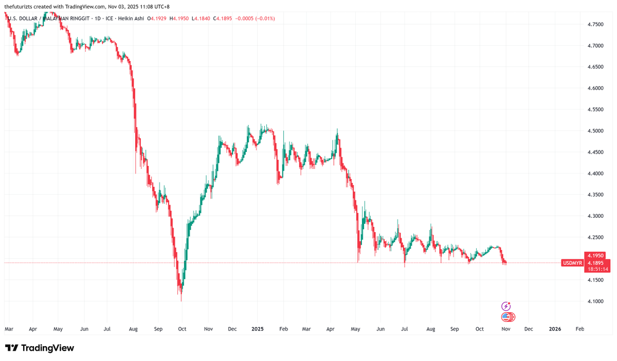 The Ringgit appreciated to RM4.1895 against the US dollar this morning. 📈