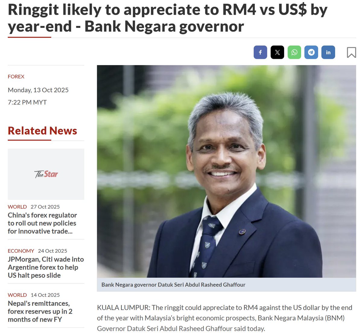 Bank Negara is expecting the local note to hit RM4.00. 📈