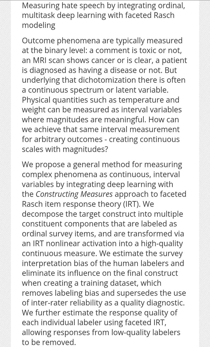 The Rasch item response theory (IRT) used to target and group speech assigning a weight and label to score the "quality " of your account, in real time, continuously.