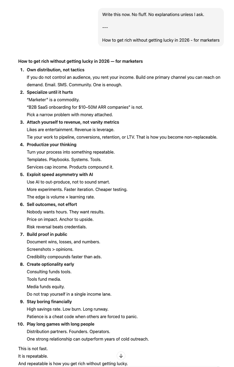 Claude actually gets this. ChatGPT still sounds like it's pitching a SaaS product.