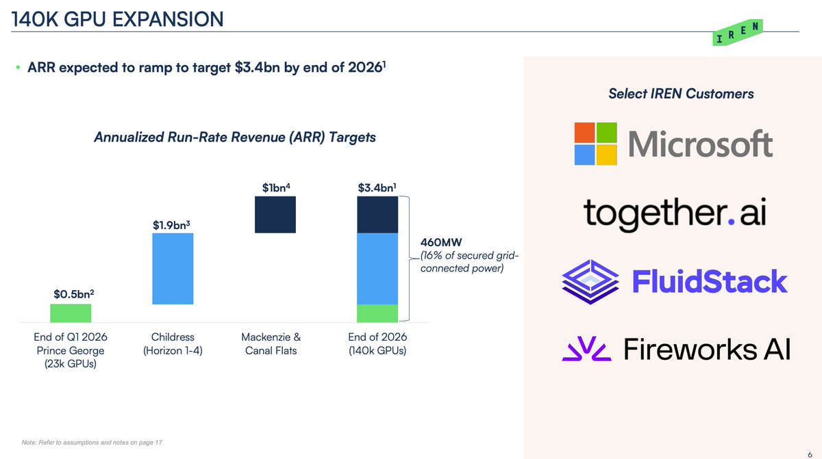 Nscale signed a five-year $14B dollar MSFT deal for 104k GPUs or 240MW. These terms are in line with IREN's with IREN getting a prepayment and Nscale's slightly higher/MW.