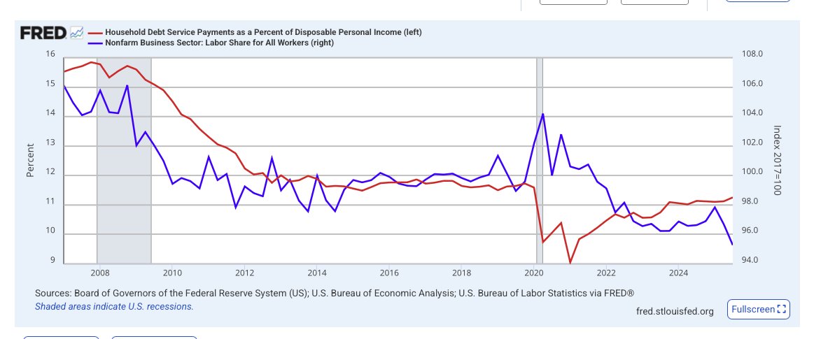 Conceptually, it represents the interest-service load that would prevail if monetary policy had not reduced nominal rates in response to debt expansion. While the actual burden rtL/Y fluctuates with policy cycles, the constant-rate version isolates the structural leverage component, reflecting the underlying stock of liabilities relative to income.