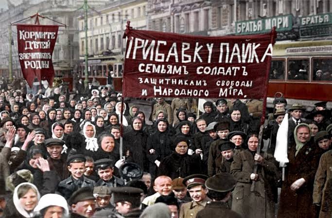 Des ouvrières du textile commencent à défiler chaque jour à partir du 23 février (8 mars de notre calendrier) et sont rejointes par des milliers de métallos puis de soldats.🔥Les insurgés s’organisent en soviets (conseils). Le Tsar abdique. Un gouvernement provisoire s’improvise.