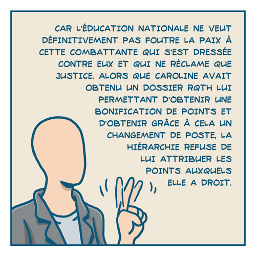 Pour quel méfait, me direz-vous ? On me reproche d'avoir parlé du cas de Caroline, victime d'insultes homophobes et d'un manque de soutien de sa hiérarchie. Caroline a elle aussi été convoquée il y a quelques semaines, ajoutant à son malheur, à son sentiment de culpabilité. 2/5