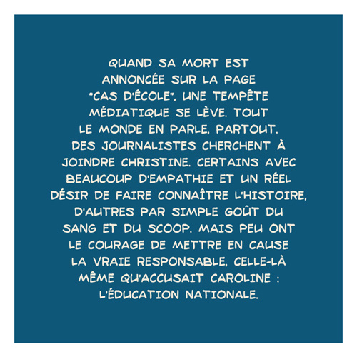 La date n'est évidemment pas le fruit du hasard. Lorsque j'ai écrit son "Cas d'école", elle voulait crier au monde sa vérité, la vérité. Pour aller mieux, mais surtout pour ne pas laisser à l'éducation nationale le soin de parler d'elle à sa place. (2/9)
