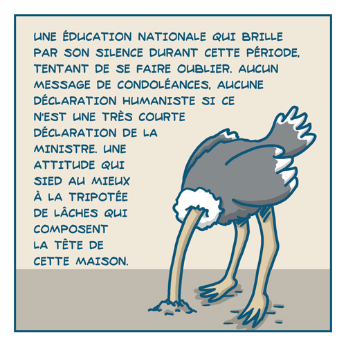 Oui, vous avez bien lu : l'Education nationale ose s'attaquer à un auteur et, à-travers lui, à une enseignante victime de violences intolérables alors même que la plainte destinée à retrouver l'auteur des tags homophobes qui visaient Caroline a été classée, faute de preuves. 3/5