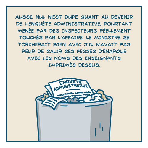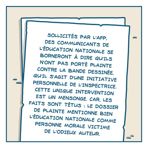J'ai eu la confirmation que la plainte était déposée au nom de l'éducation nationale par une inspectrice et ses conseillères pédagogiques. (3/8)