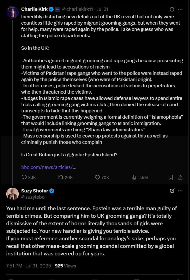 So what are Suzy’s pet causes and interests? What ties her pursuit of finding conservative orgs as new vehicles to those pet causes? What her transgressions against Charlie Kirk, TPUSA, Kevin Roberts, The Heritage Foundation, and JD Vance all have in common?