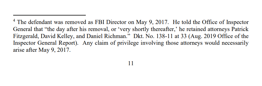 Last week, Mag. Judge Fitzpatrick denied DOJ's motion for a filter protocol and ORDERED them to turn over to Comey "all materials seized pursuant to the four 2019 and 2020 [Arctic Haze] search warrants," all grand jury material, and more.