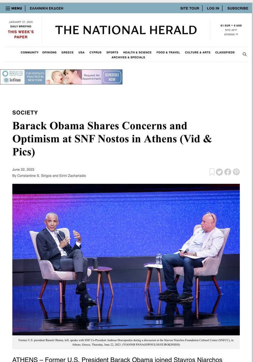 Obama’s presidential library has a wing funded by SNF (remember this is Greek dollars):