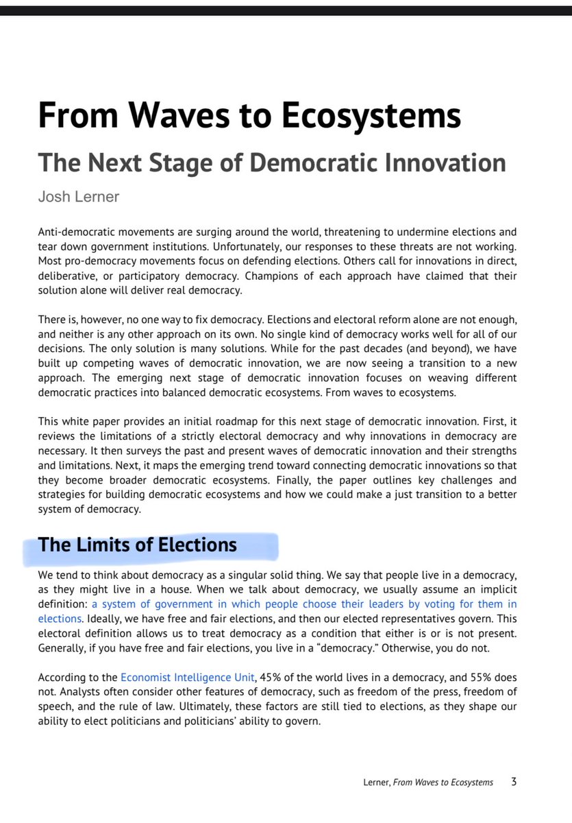 “The next stage of democratic innovation is beginning to explore how to move beyond the dominant model of elections”