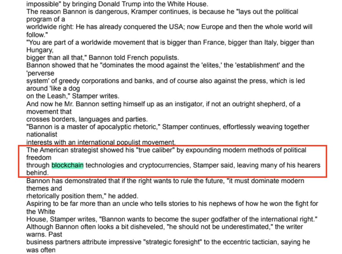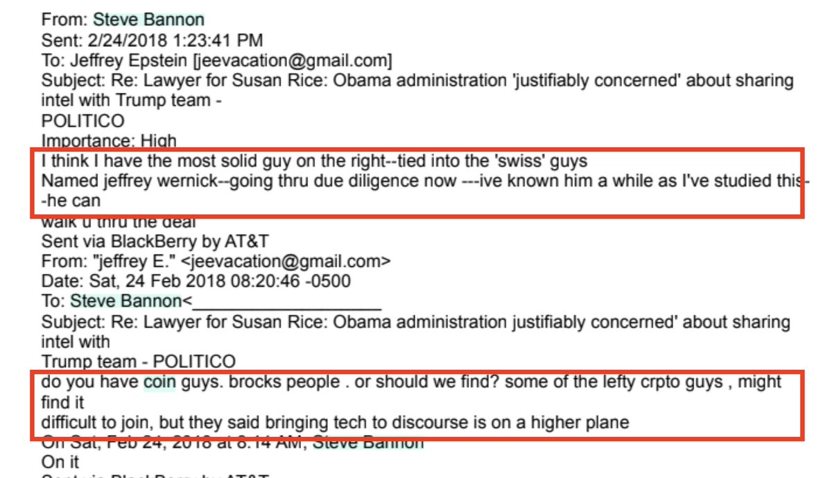 Wherein Steve Bannon sends Epstein emails containing articles about Steve Bannon's tireless advocacy for crypto as a means to destabilize the world order, which I guess he planned to with the #PatriotPay memecoin grift he used to rob his MAGA fans.