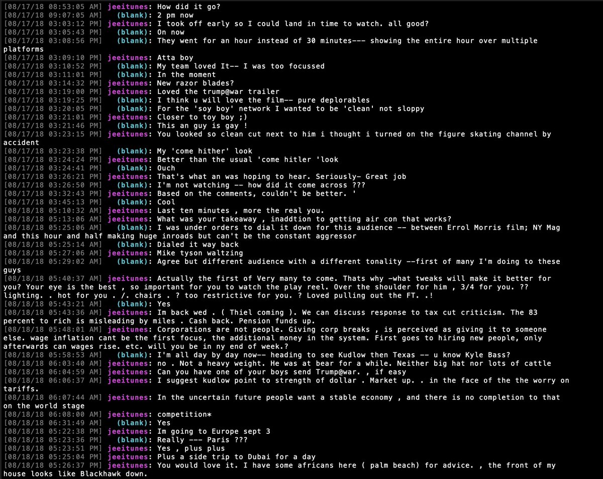 they talk about "trump@war" a bunch, prolly a bannon email address?