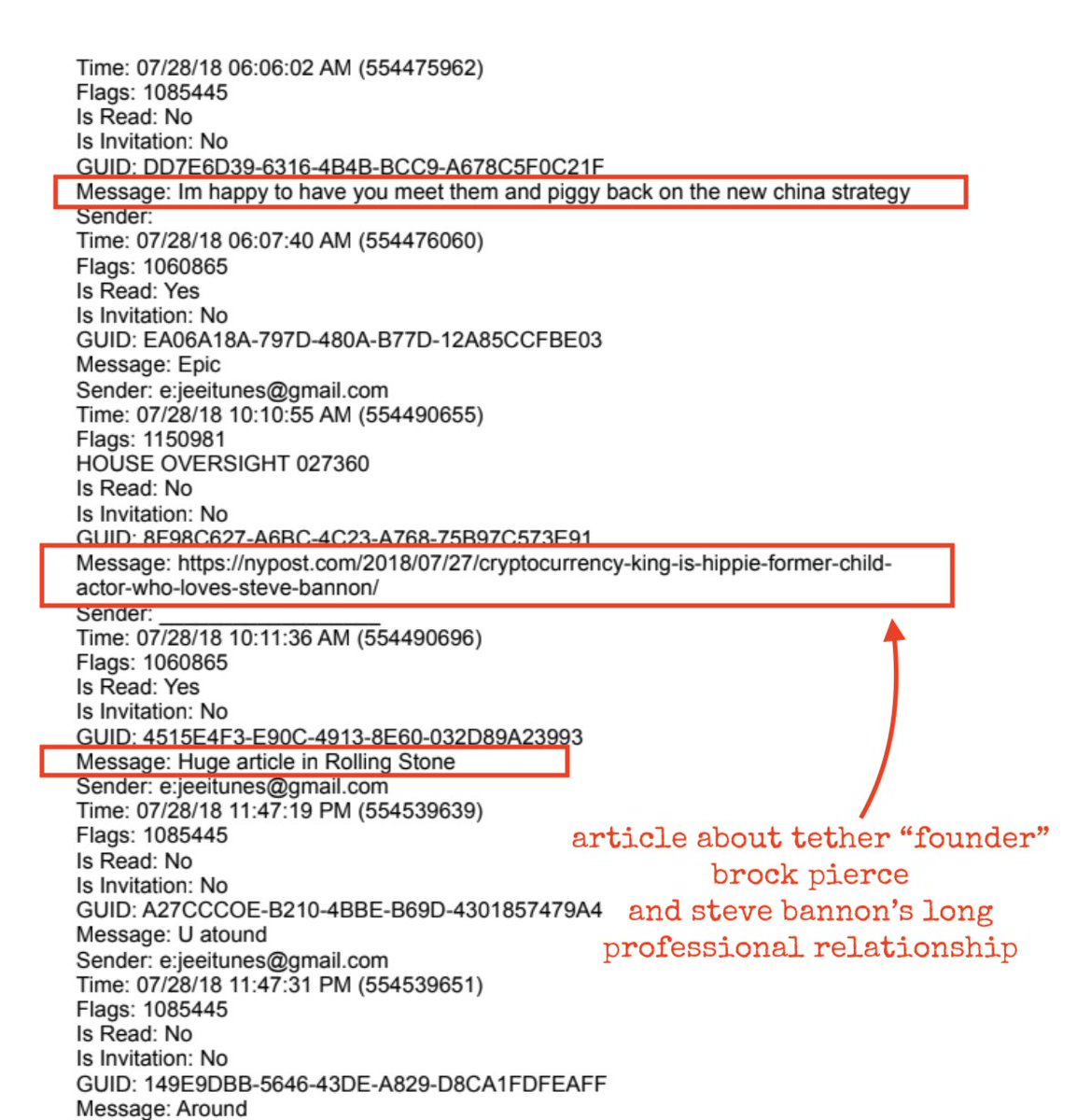 she then sends a link to a NYP article about Tether founder brock pierce along w/comment on "new china strategy".