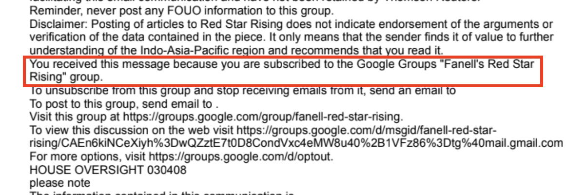 Epstein's emails about "china strategy" are quite interesting... he forwarded this to steve bannon so it seems like epstein was subscribed to a google group called "Fanell's Red Star Rising" where people scare each other with news of china's rise to dominance