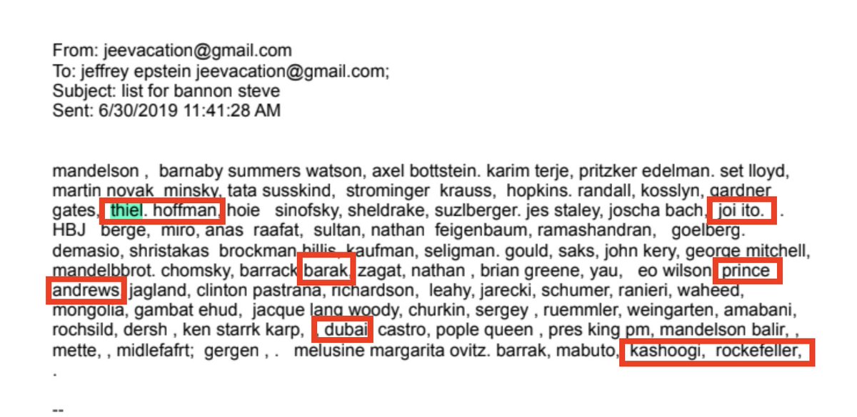 "List for Bannon Steve" - Jeffrey Epstein, June 2019