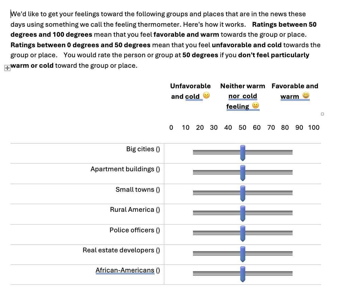 Also, the effect size on the "allow developers to build apartments in your neighborhood" DV is about what one would expect if the observational (control condition) relationship between feeling thermometer ratings and this DV were causal.