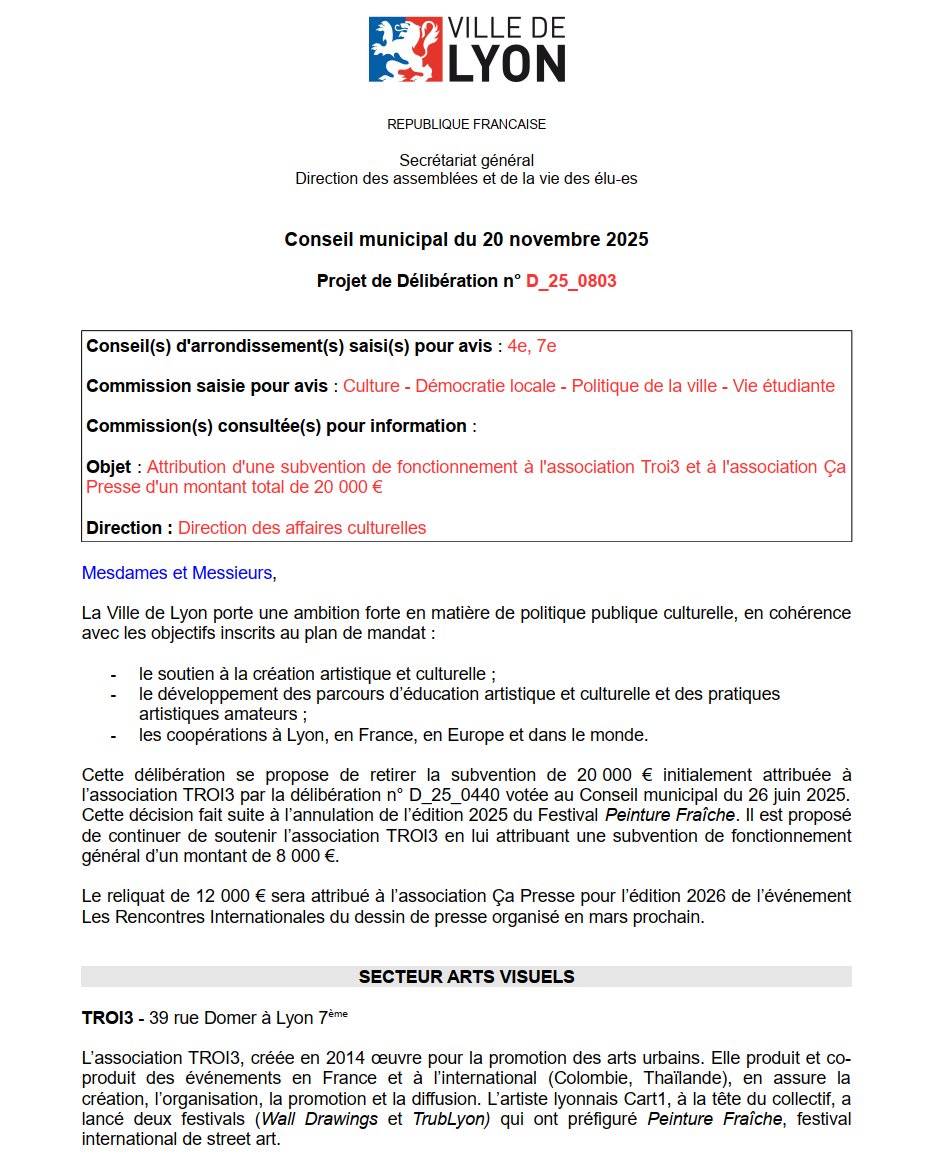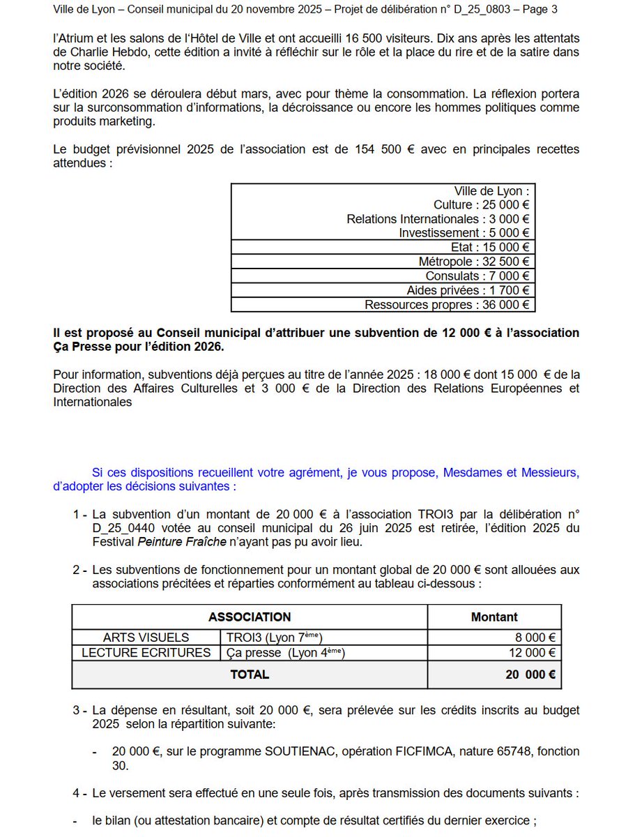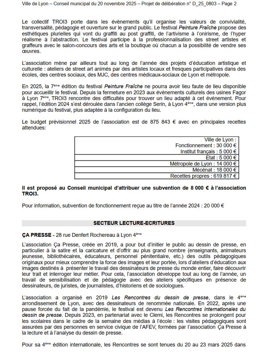 Commençons donc par la presse, avec 10 K€ de subventions proposés pour "Les Rencontres Internationales du dessin de presse", dont la prochaine édition aura lieu en mars prochain. (et autant pour Peintures Fraîches aka @PFF_Festival) Image