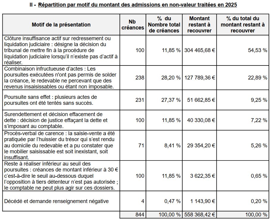 558 K€, c'est la sommes des créances irrécouvrables que la Ville ne pourra percevoir dans le cadre de son budget 2025. Image