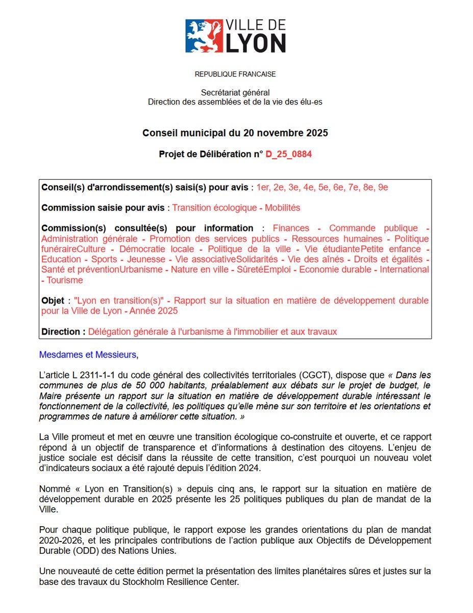 Bonjour et bienvenue pour ce dernier conseil municipal de Lyon de l'année civile ❤️❤️❤️ Image