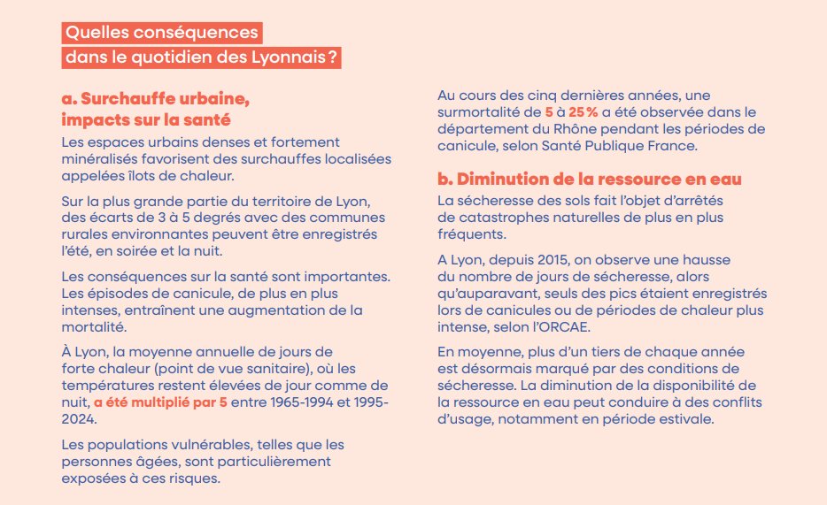Dans ce rapport, on apprend notamment que la température a augmenté de 3,3°C en moyenne en 60 ans à Lyon. Avec "une surmortalité de 5 à 25 % [...] observée dans le département du Rhône pendant les périodes de