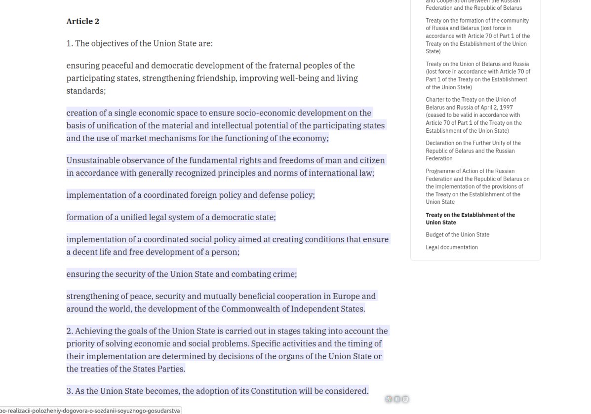 Moscou et Minsk sont liées par le Traité d'Union de 1999. Un contrat de mariage qui donne à une "union" supranationale une large compétence : commerce, économie, armées, droit... Enfin, c'est la lecture actuelle.