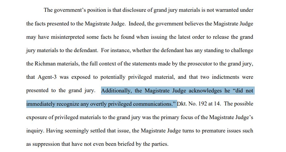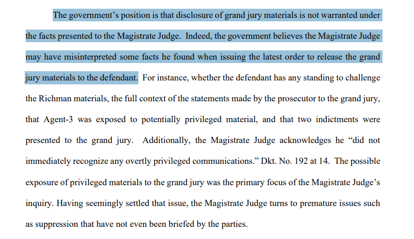 "Indeed, the government believes the Magistrate Judge may have misinterpreted some facts he found when issuing the latest order to release the grand jury materials to the defendant."