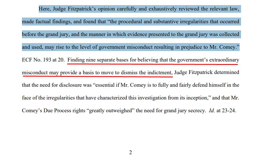 "Here, Judge Fitzpatrick’s opinion carefully and exhaustively reviewed the relevant law, made factual findings, and found that “the procedural and substantive irregularities that occurred before the grand jury, and the manner in which evidence presented to the grand jury was collected and used, may rise to the level of government misconduct resulting in prejudice to Mr. Comey.”"