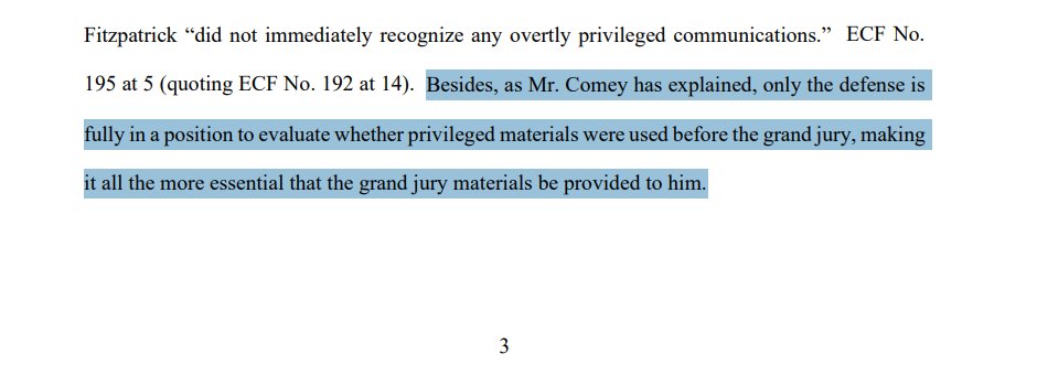 "Besides, as Mr. Comey has explained, only the defense is fully in a position to evaluate whether privileged materials were used before the grand jury, making it all the more essential that the grand jury materials be provided to him."