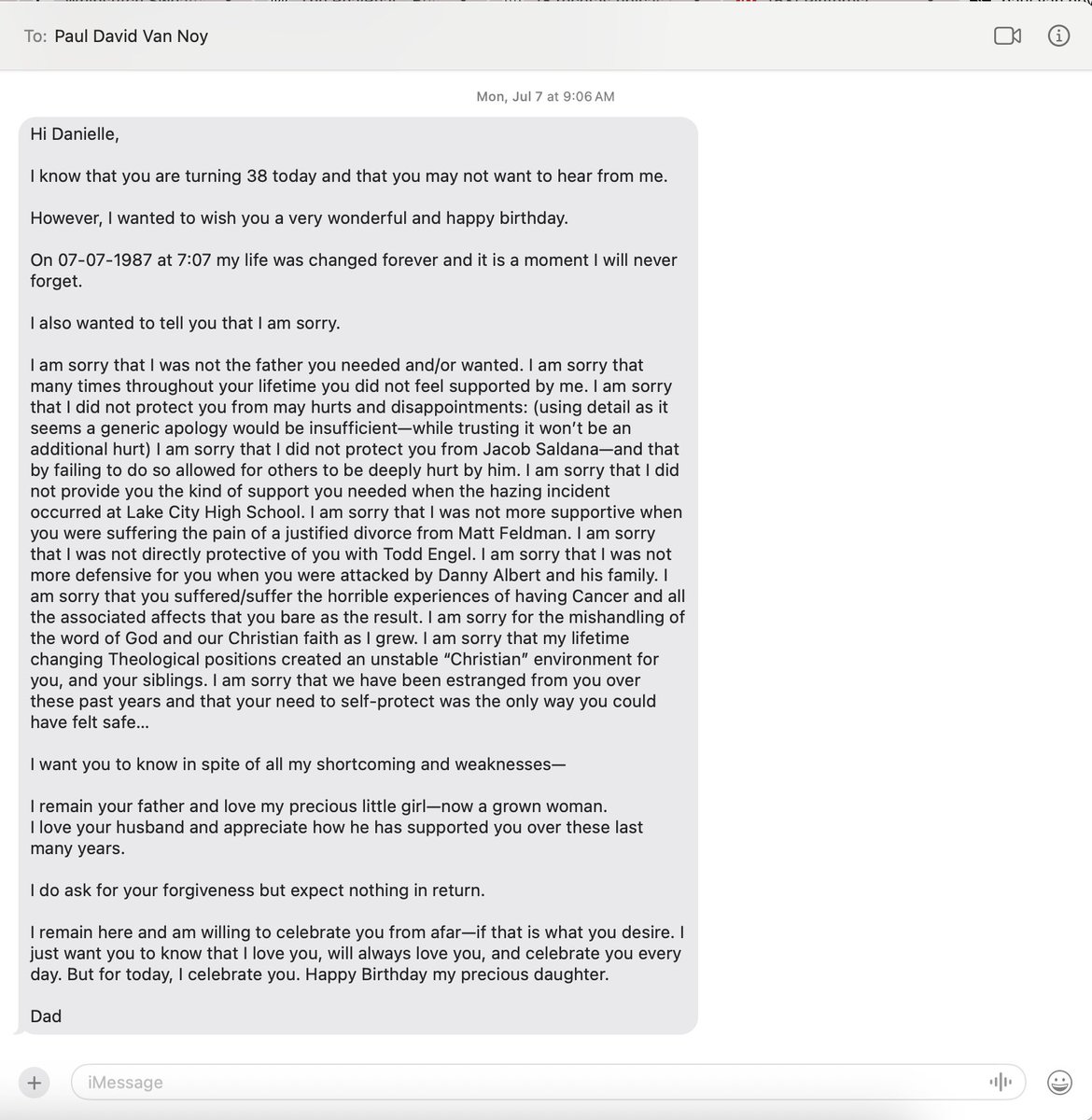 For verification, included below are relevant links, along with my father’s words of admission to these things in a text sent on my birthday, July 7, 2025. /1Image