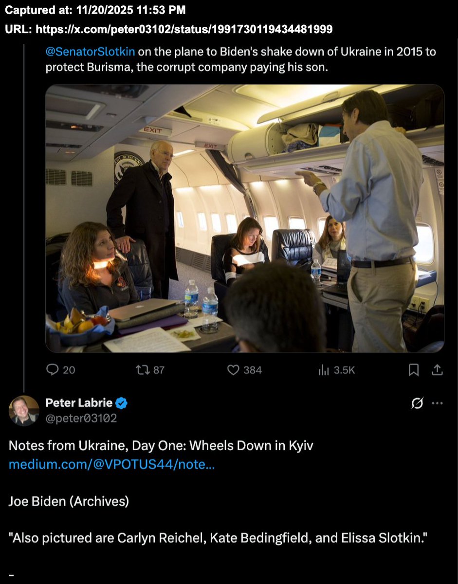@SenMarkKelly @RepJasonCrow @RepDeluzio @RepGoodlander @RepHoulahan @SenatorSlotkin on the plane to Biden's shake down of Ukraine in 2015 to protect Burisma, the corrupt company paying his son.