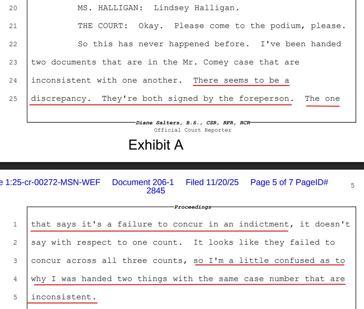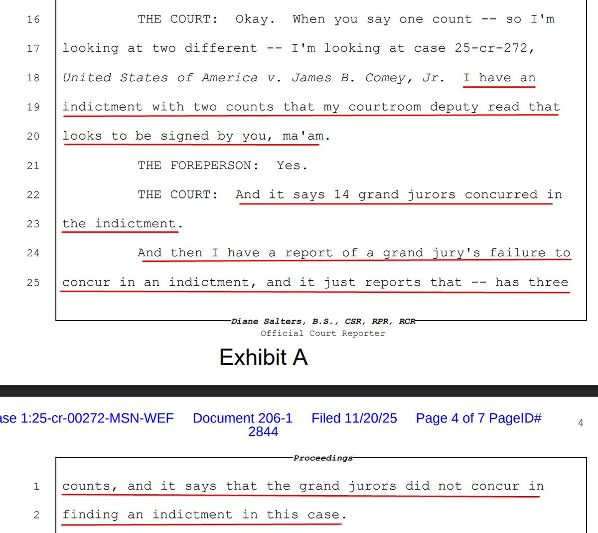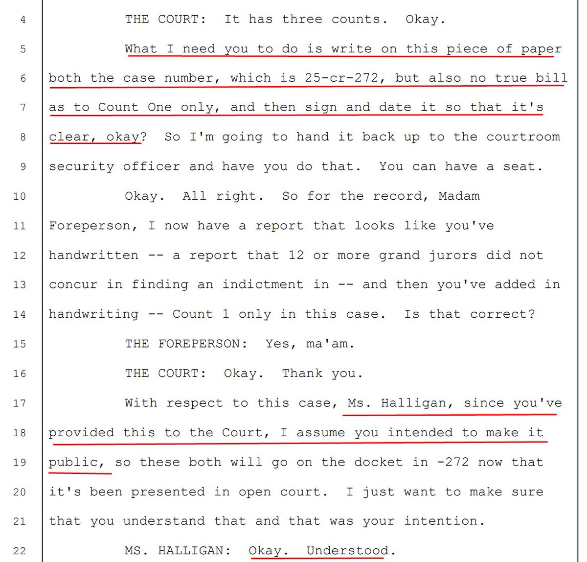 Another filing from Halligan seeking to clarify the grand jury proceedings that have been the focus of scrutiny over recent days and really, since day one in this case—as the just-filed Transcript of Return of Grand Jury Indictment Proceedings shows.
