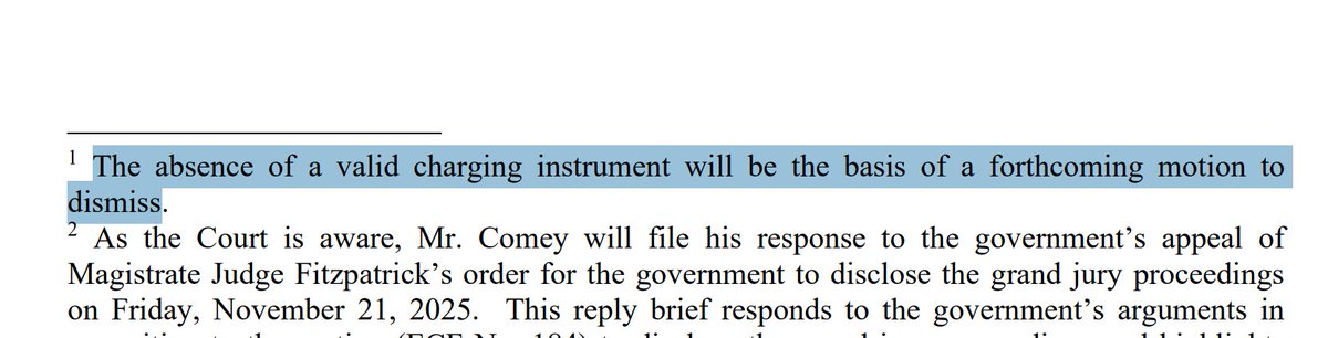 Comey's team informed the court tonight this will be the subject of a forthcoming motion to dismiss.
