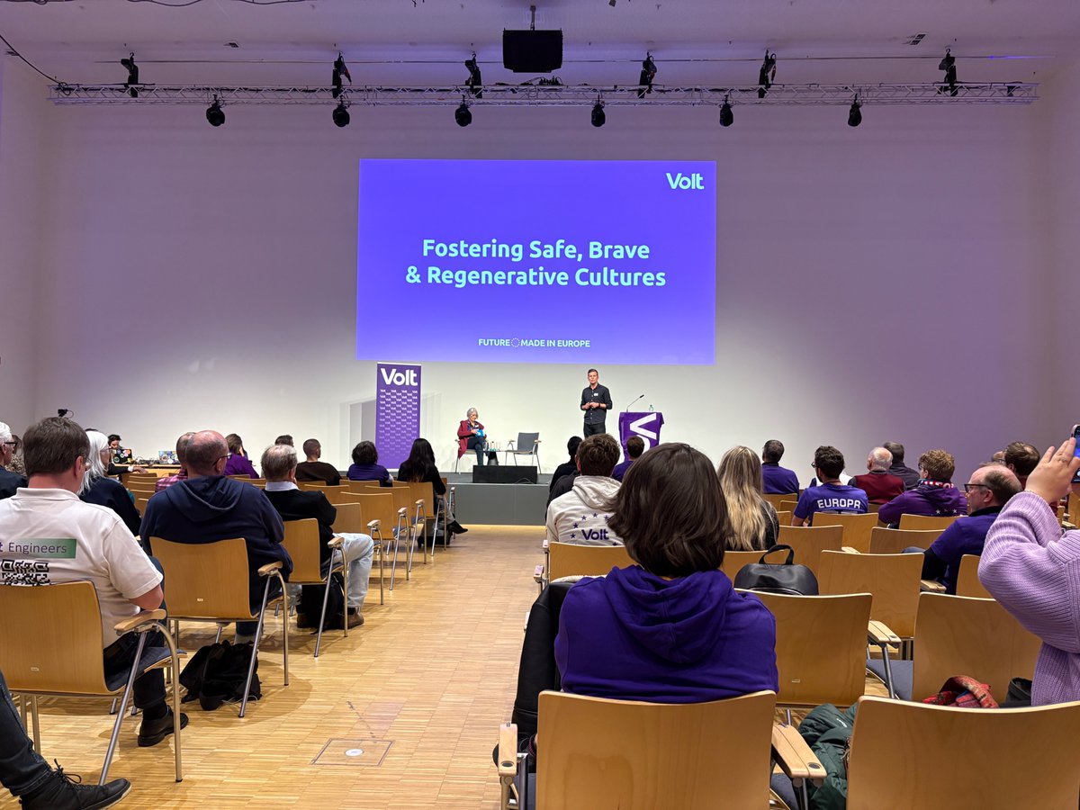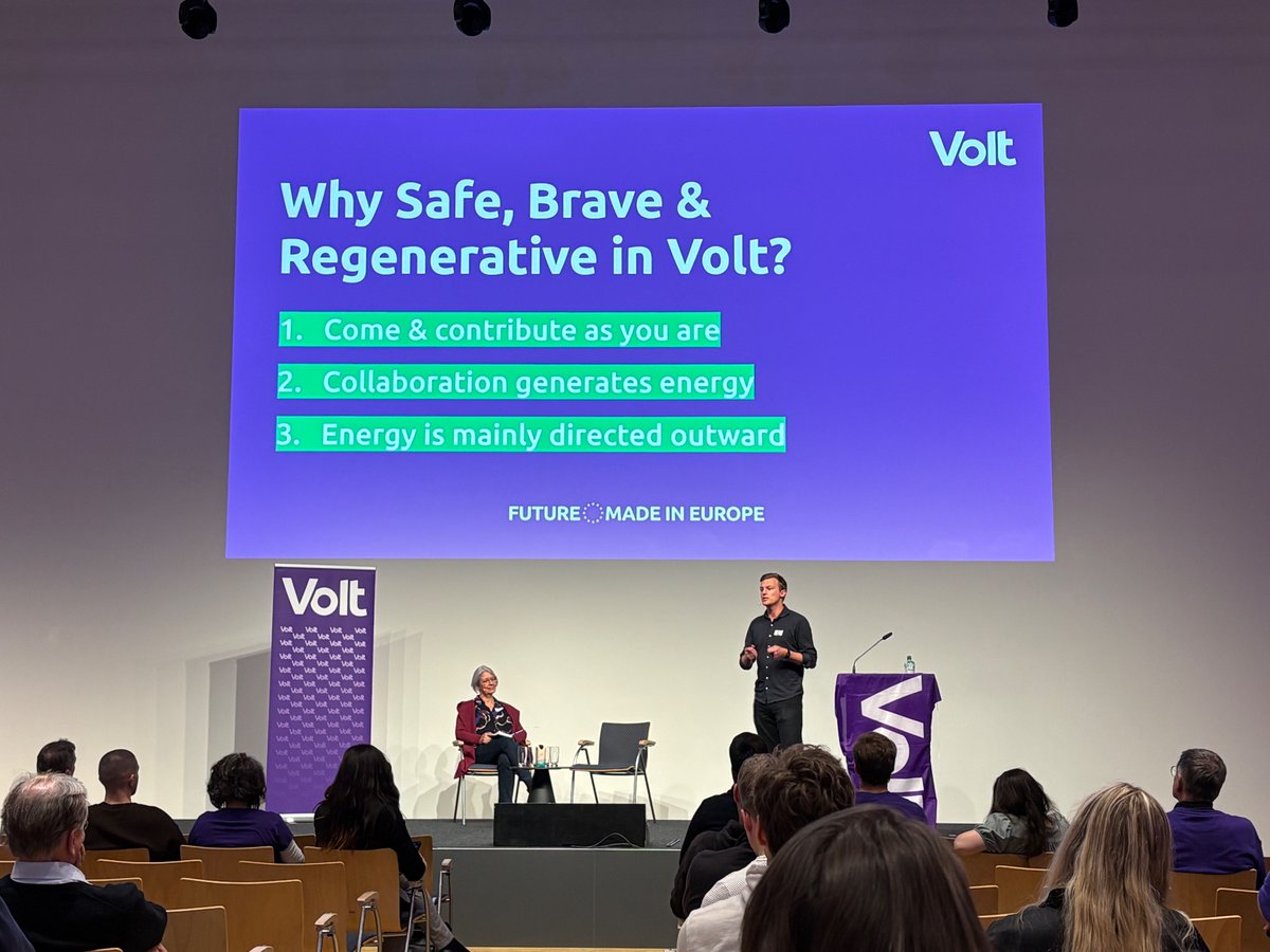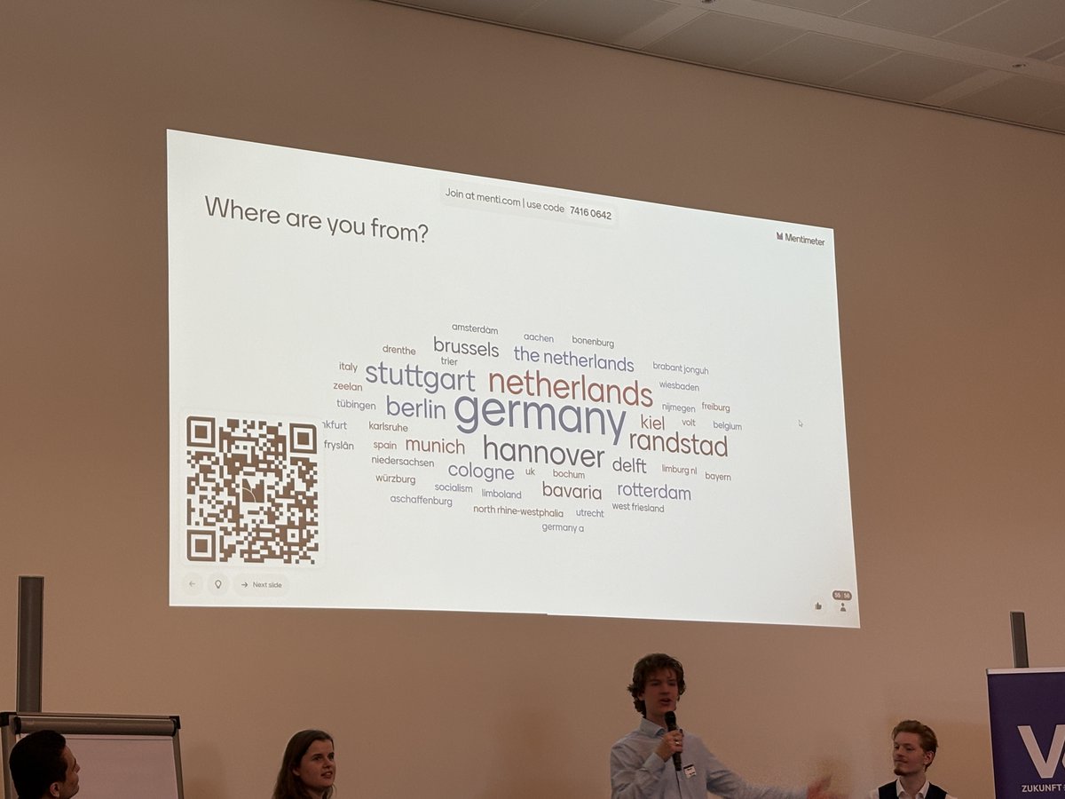 We worden welkom geheten door de voorzitter van Volt Duitsland.