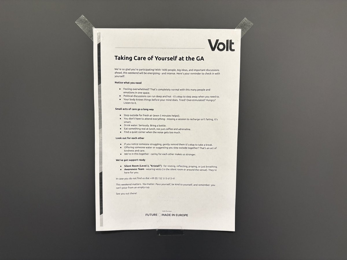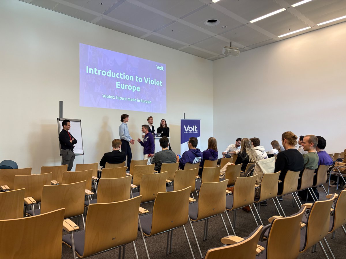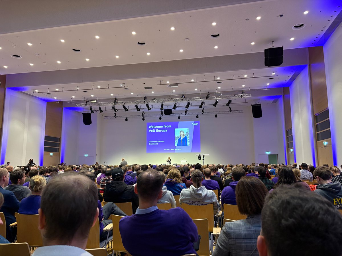 We worden welkom geheten door de voorzitter van Volt Duitsland.