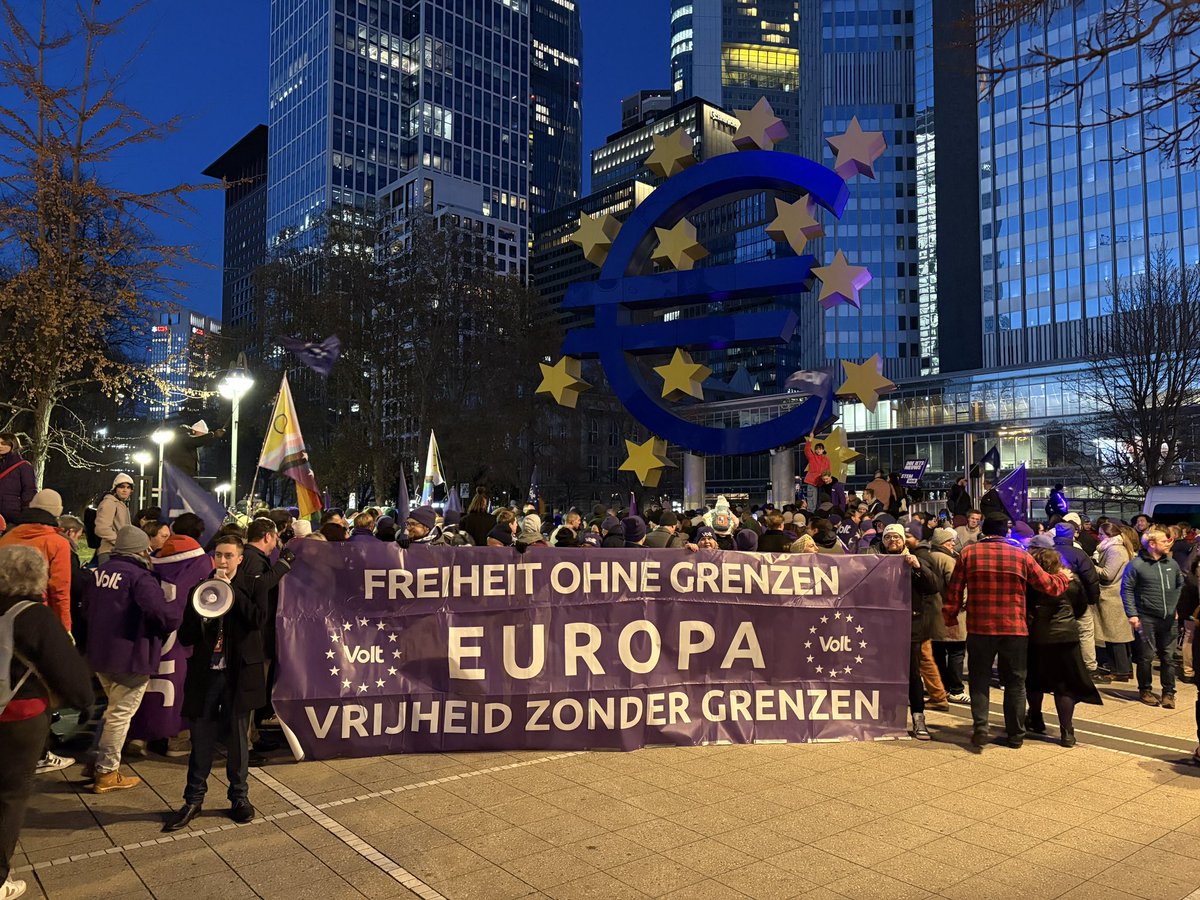 Er komen kennelijk weer verkiezingen in Frankfurt aan. Volt wil verder in het stadsbestuur en acht procent van de stemmen halen. Begint nu Europese activiteiten van het Frankfurtse stadsbestuur te prijzen.