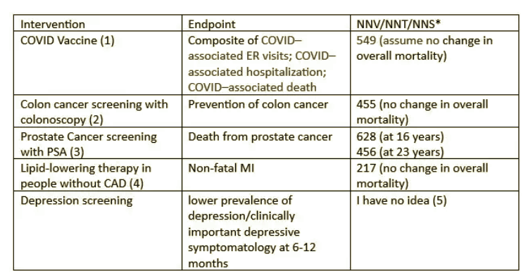 - At what NNT/NNS/NNV do we not feel chagrin when someone becomes ill?