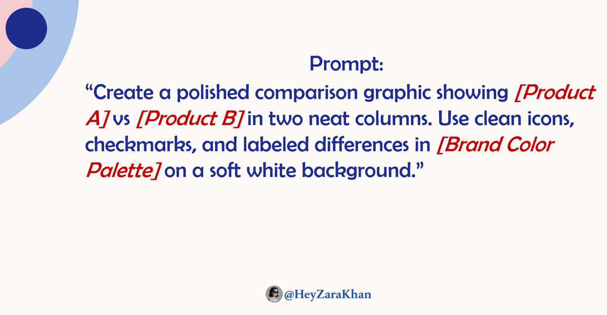 “Create a polished comparison graphic showing [Product A] vs [Product B] in two neat columns. Use clean icons, checkmarks, and labeled differences in [Brand Color Palette] on a soft white background.”Image