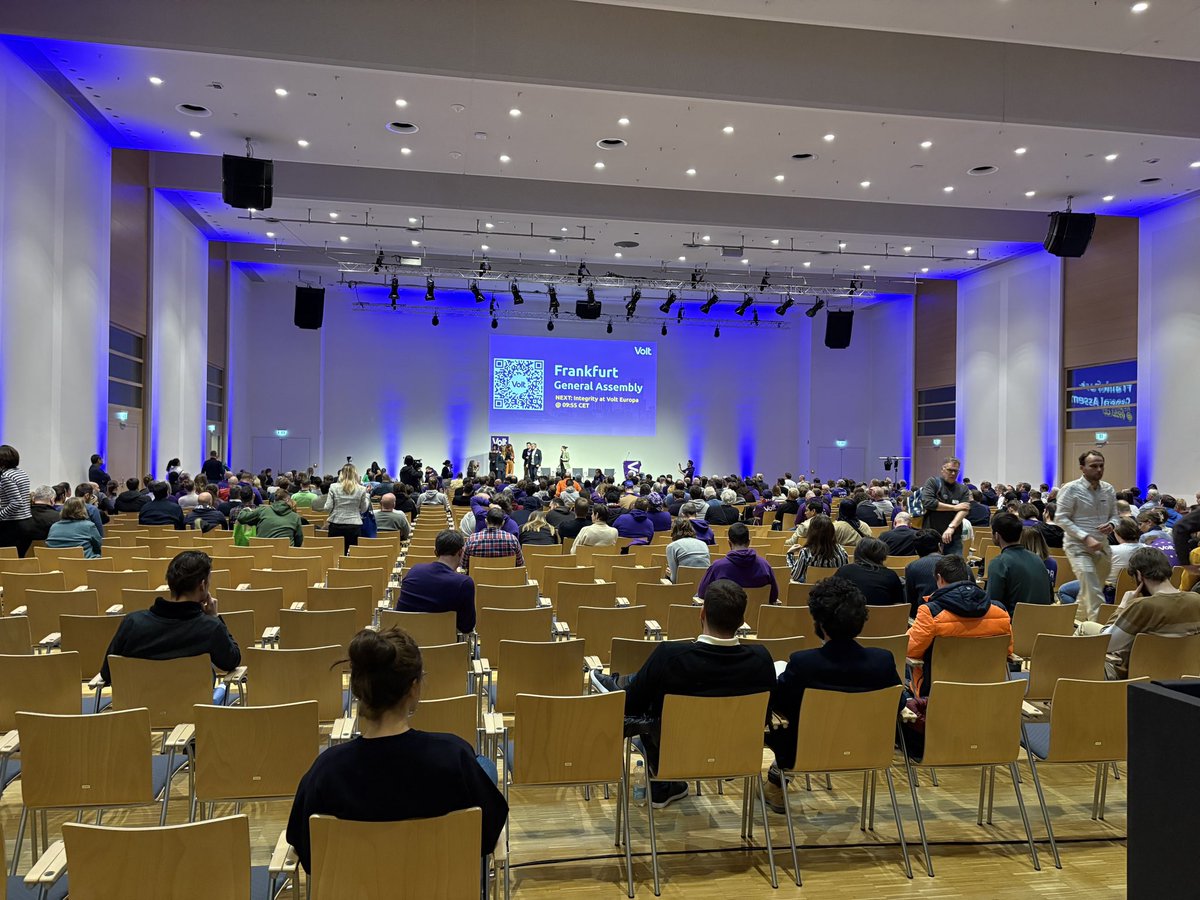 In Frankfurt: het ledencongres van #Volt Europa, de moederpartij van Volt Nederland. Twee dagen lang. #draad #erbij #live
