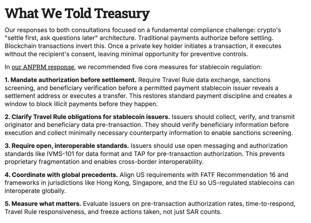 My friends @notabene_id just wrote the Treasury to suggest best practices for Genius compliant stablecoin payments.