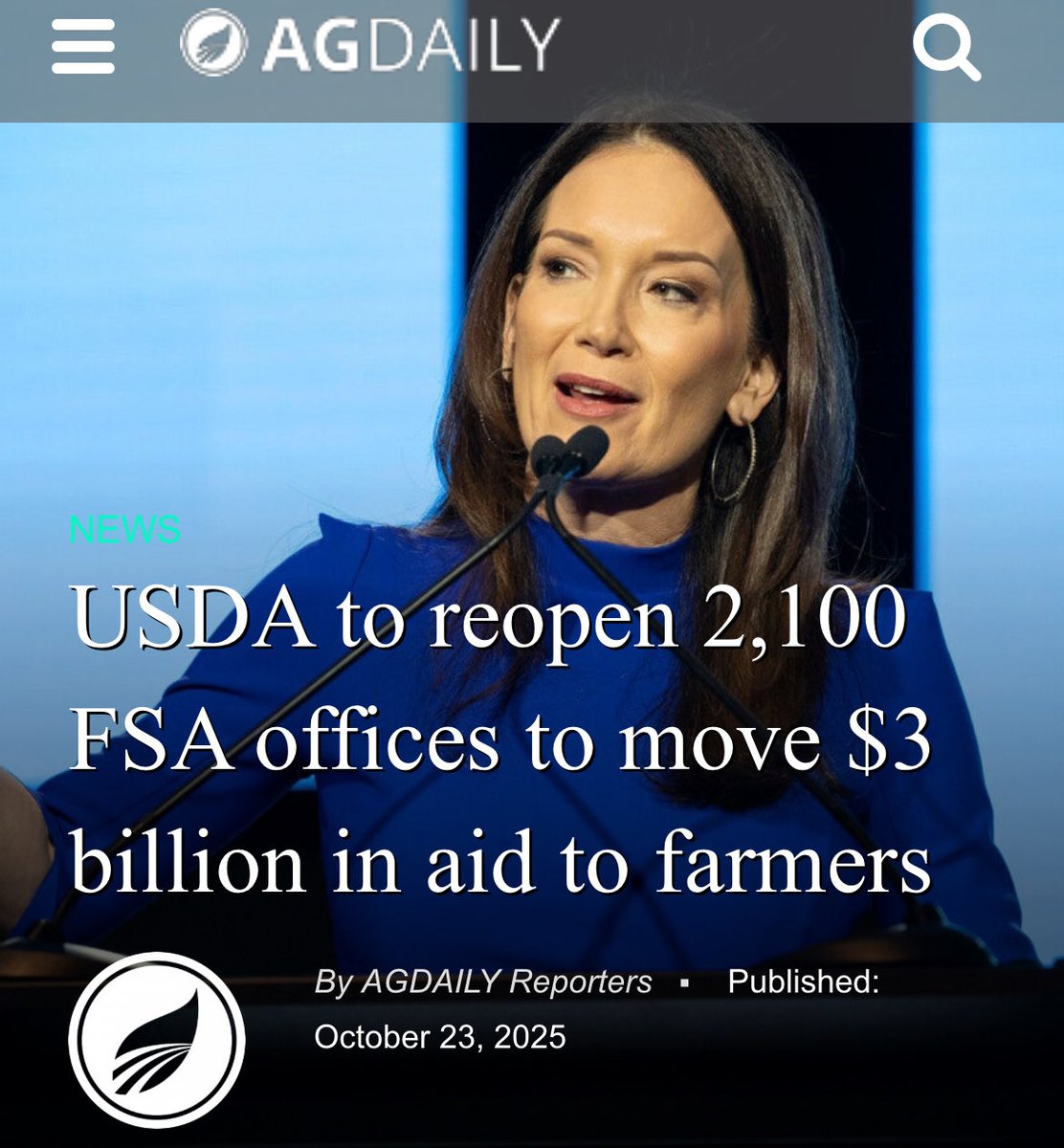 The Department of Agriculture will, however, reopen 2,100 Farm Service Agency offices to distribute $3 billion to farmers as many struggle to survive as Trump’s tariffs cause other countries to turn elsewhere for agricultural products they used to buy from American farmers.